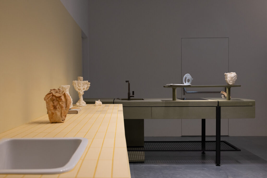 The kitchen thus loses its traditional domestic dimension to become an artistic laboratory, a table-set on which food is designed, composed, observed, and transformed. A place to live, pass through, and activate.